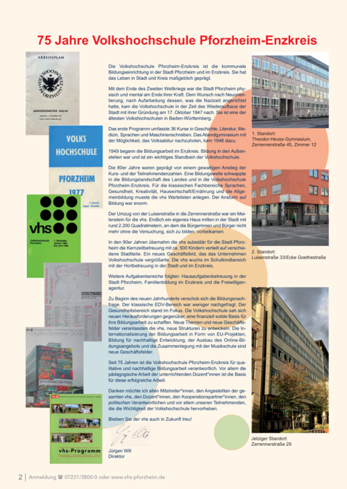 Seit 75 Jahren ist die Volkshochschule Pforzheim-Enzkreis für qualitative und nachhaltige Bildungsarbeit verantwortlich. Vor allem die pädagogische Arbeit der unterrichtenden Dozent*innen ist die Basis für diese erfolgreiche Arbeit.